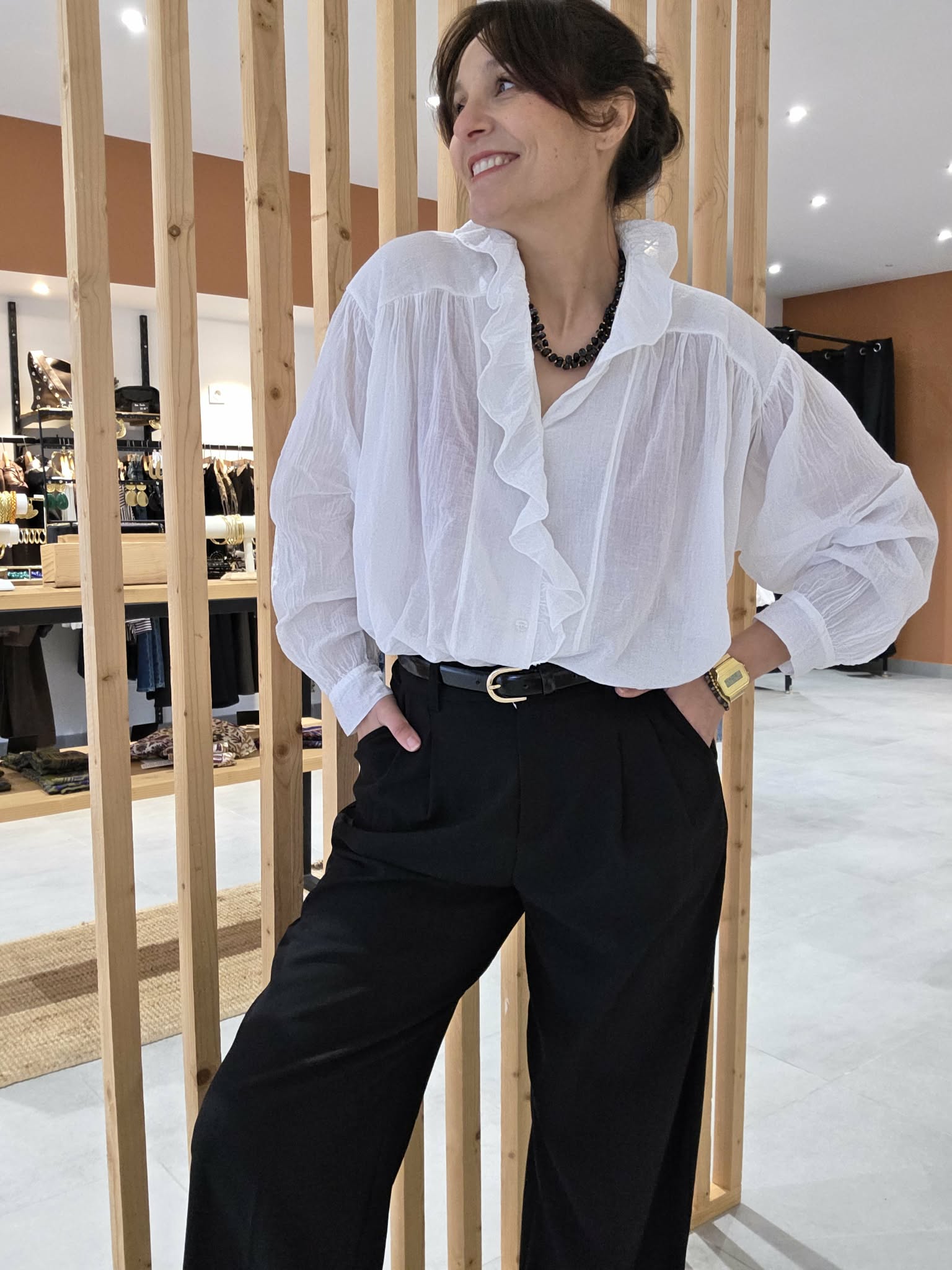 Une pièce facile à porter, aussi jolie rentrée dans un jean que portée loose pour un look bohème chic.