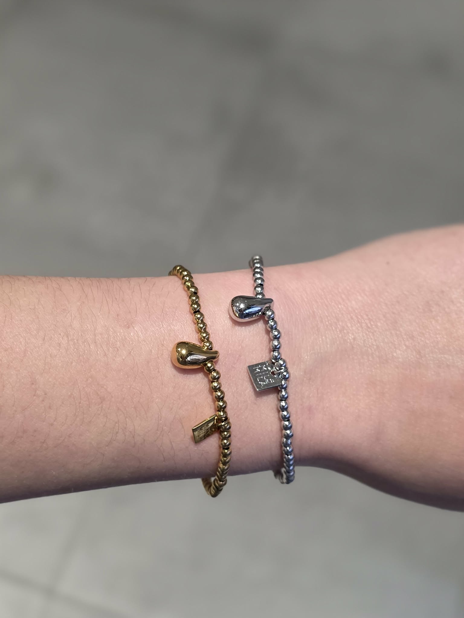 Bracelet à perles métalliques avec une goutte. Disponible en doré ou argenté, parfait seul ou en accumulation.