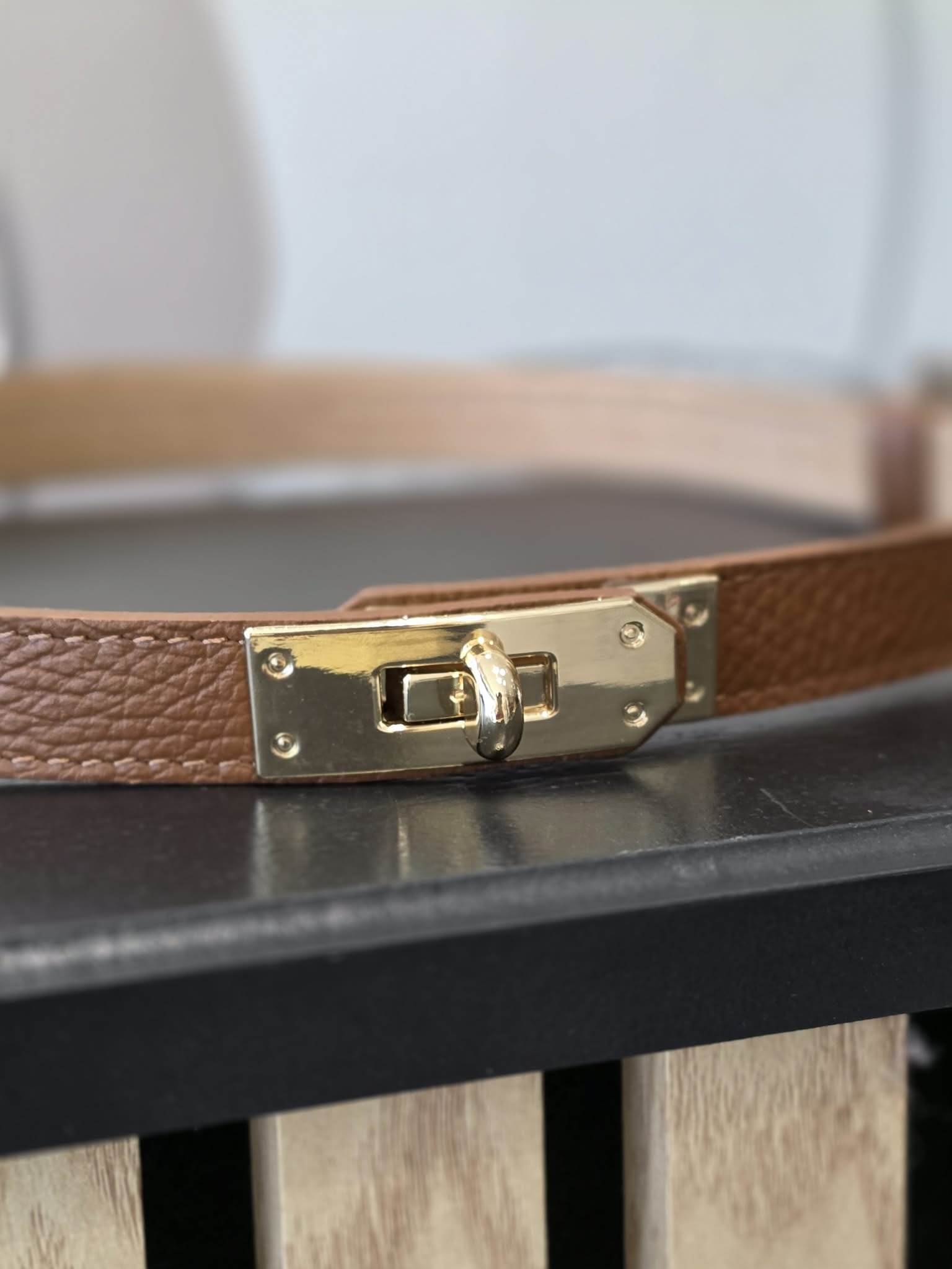 Ceinture fine camel boucle dorée