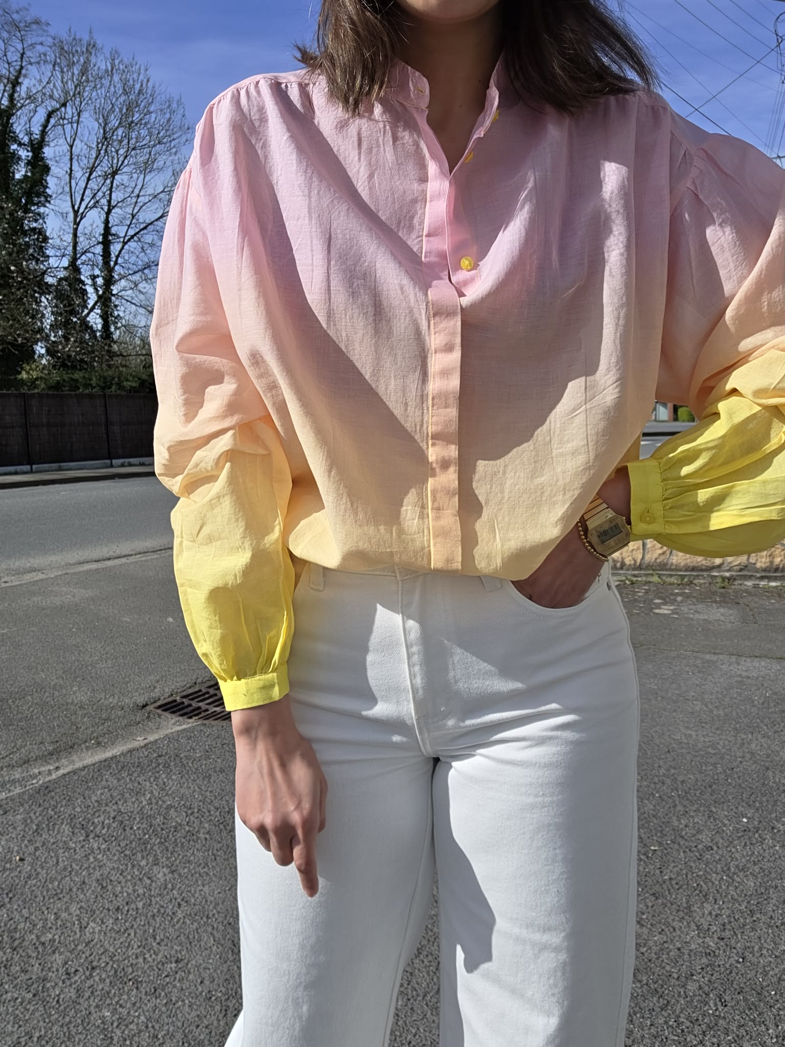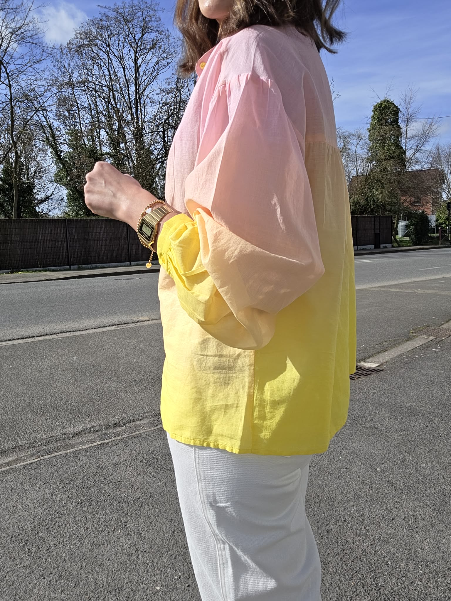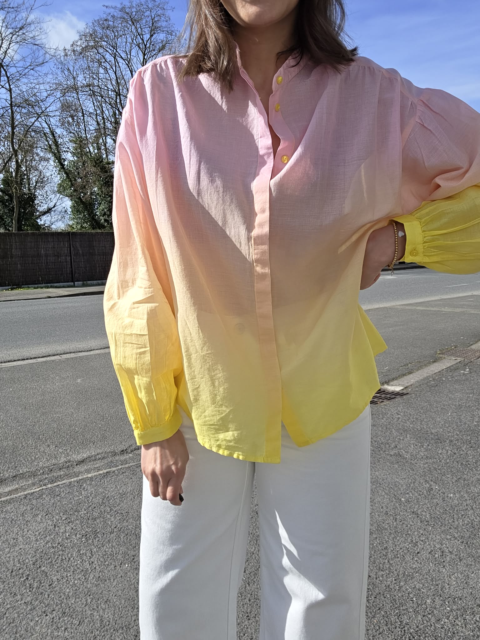 Chemise tie and die avec un dégradé de rose et de jaune, hyper légère à porter.