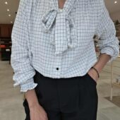 Une blouse chic et légère à carreaux fins, idéale pour un look féminin et intemporel. Son col à nouer apporte une touche d’élégance subtile, parfaite aussi bien avec un jean qu’une jupe. Sa coupe fluide et sa matière douce assurent un confort absolu toute la journée.