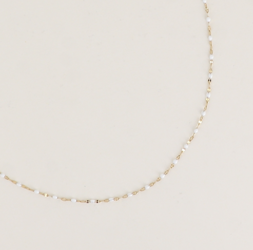 Collier en acier inoxydable composé d’une maille type grain de café plat et aux touches émaillées.