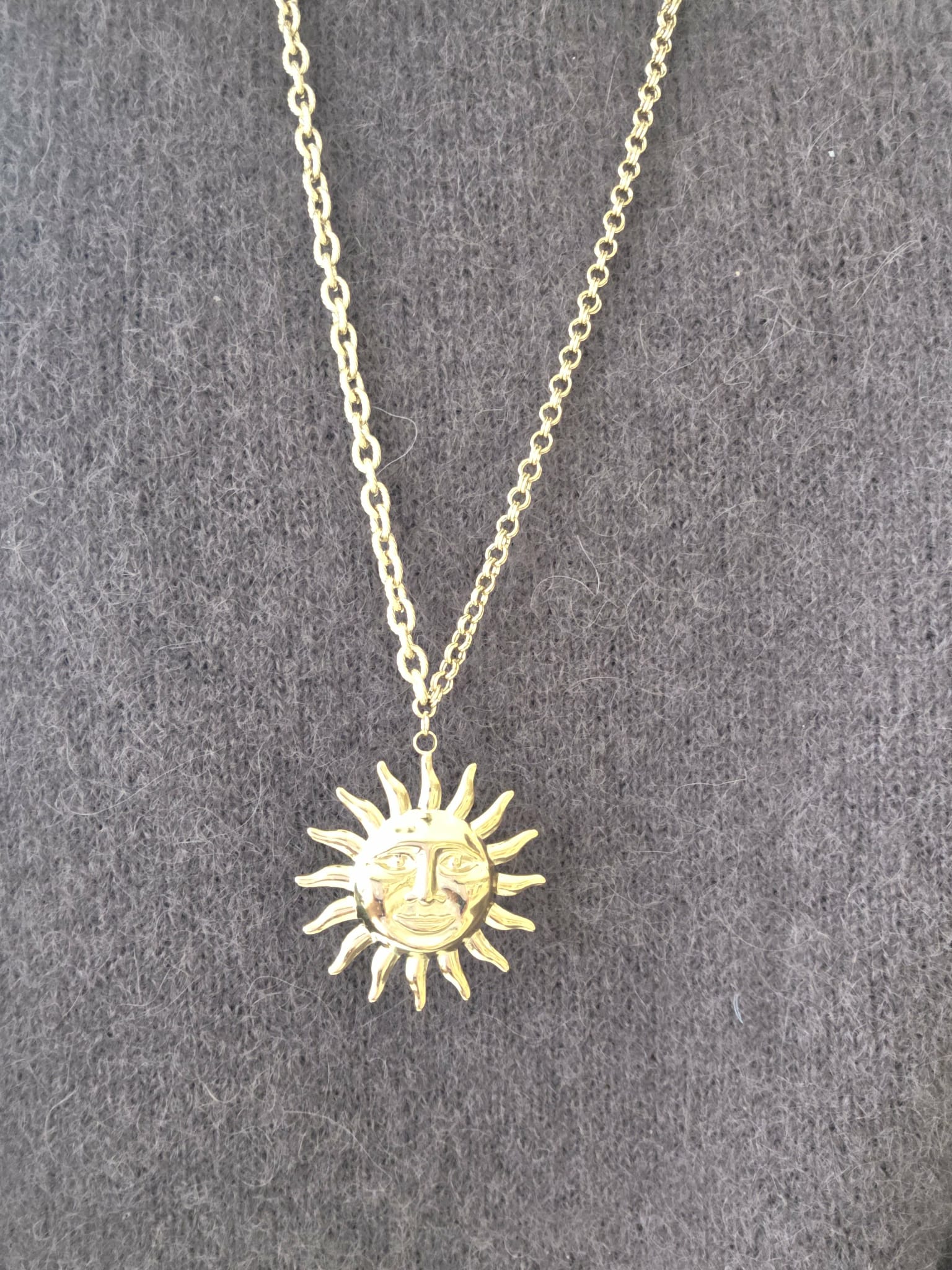 Apportez une touche de lumière à votre look avec ce superbe collier doré orné d’un pendentif en forme de soleil. Son acier inoxydable résistant garantit une brillance durable sans risque d’oxydation ni d’allergie. Idéal à porter seul pour un effet minimaliste ou en superposition pour un style plus affirmé.