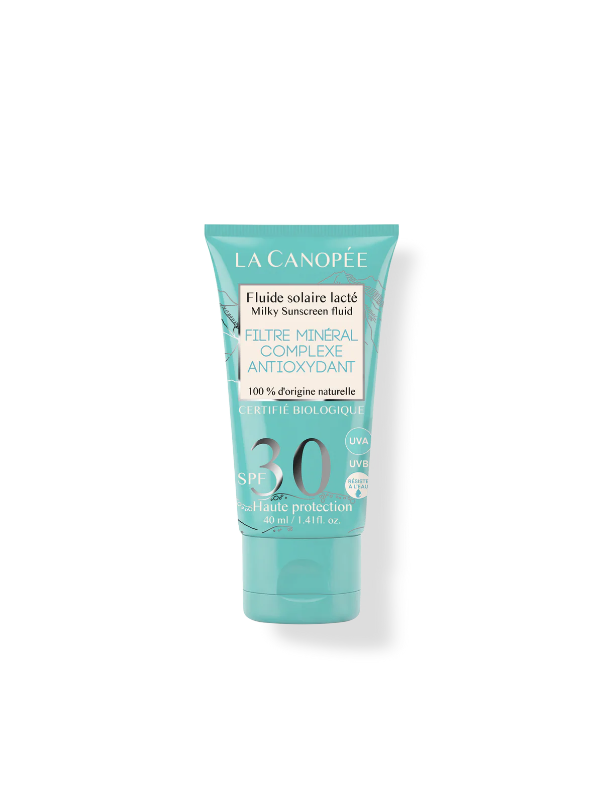 Plus qu’un solaire, le fluide solaire lacté est un soin complet qui protège, apaise et préserve la peau, dans le respect de sa sensibilité et de l’environnement.
