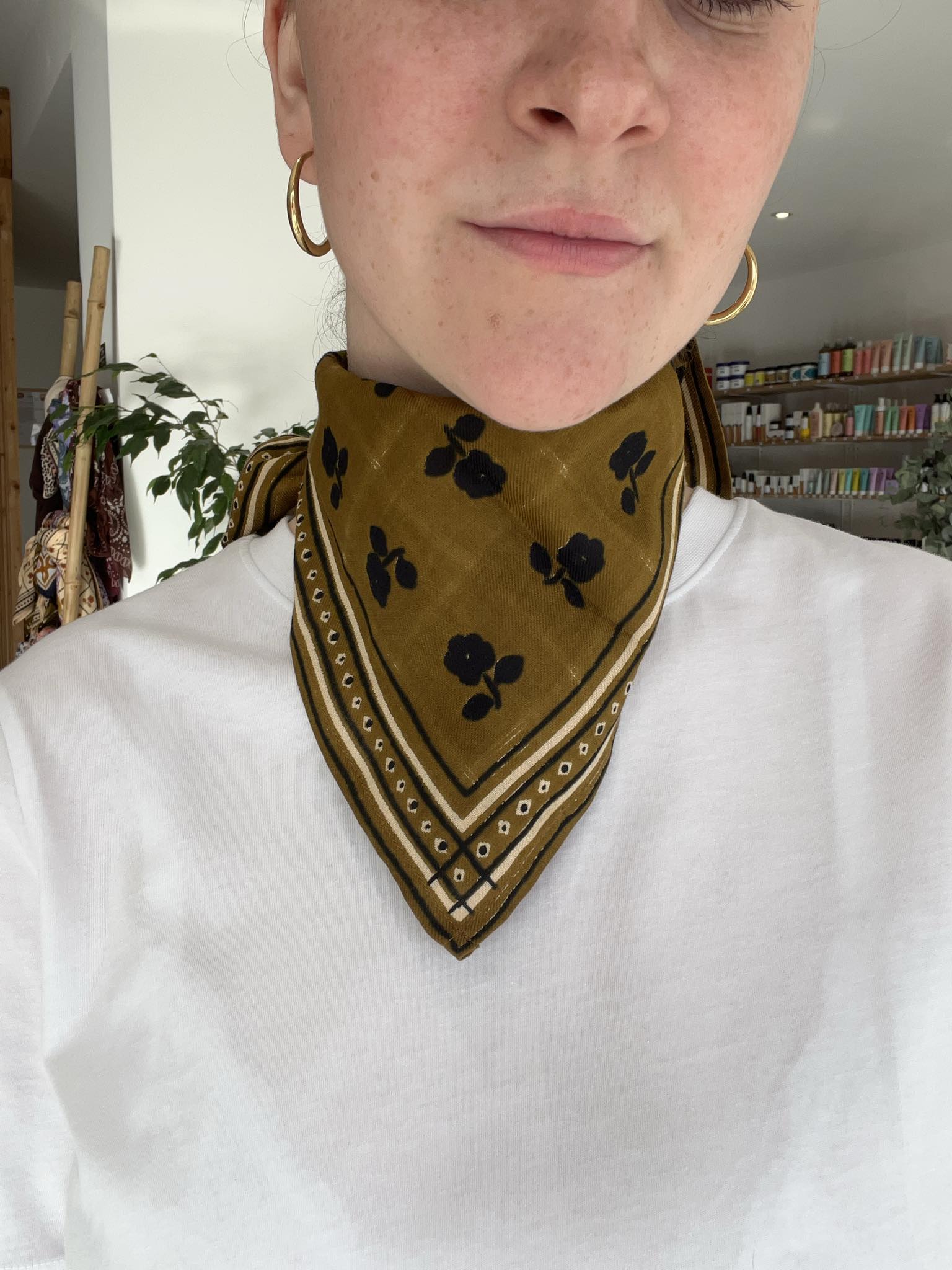 Le petit foulard sister matcha signé Love Explorers apporte une touche naturelle et délicate à vos looks. Réalisé en coton et imprimé artisanalement selon la technique indienne du block print, il séduit par ses nuances matcha douces et ses motifs subtils. Son format compact est idéal à nouer autour du cou, dans les cheveux ou sur un sac pour une note fraîche et élégante au quotidien.