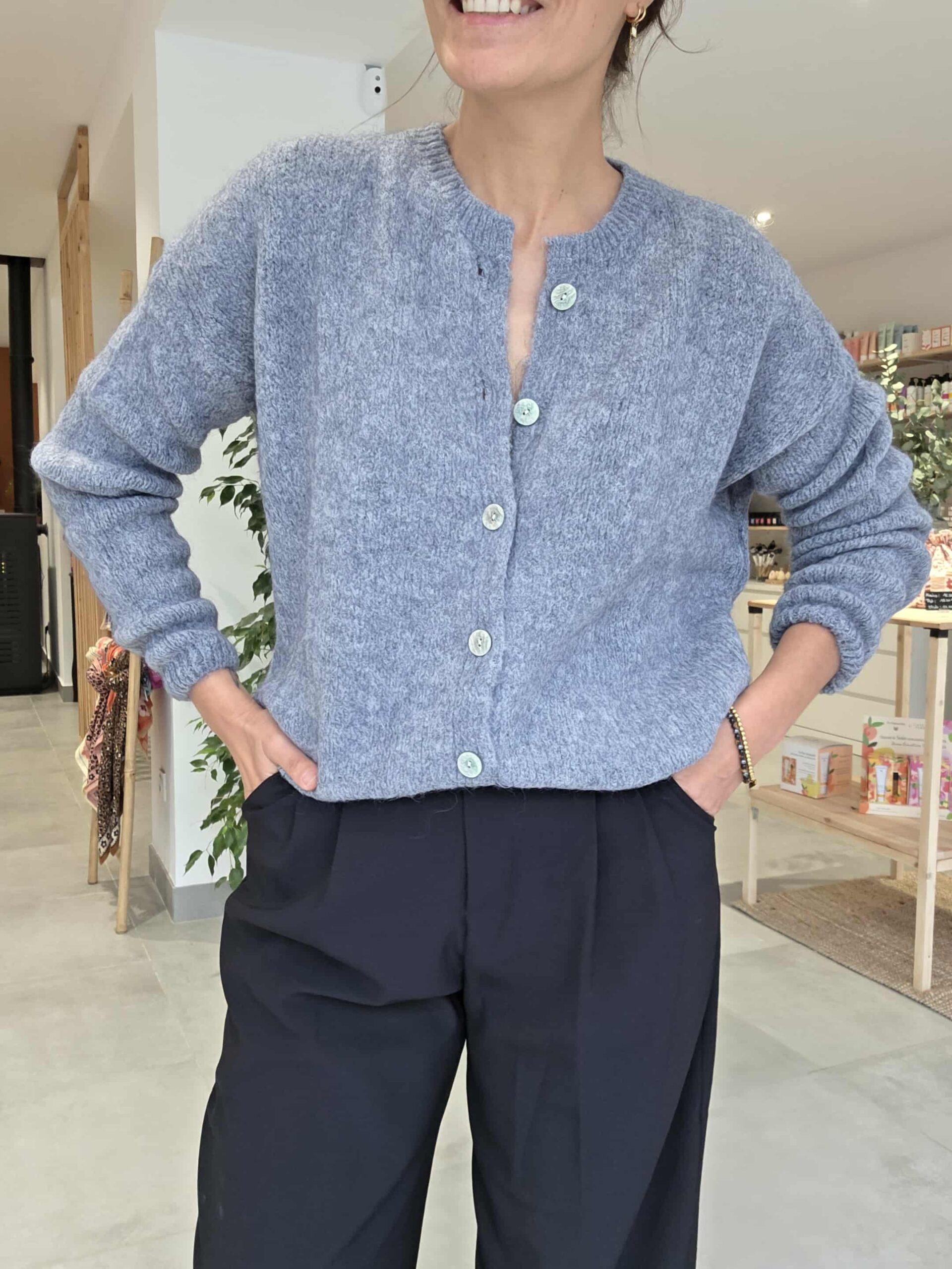 Avec ses boutons sur le devant et sa maille moelleuse, il se marie aussi bien avec un jean qu’une jupe pour un look tendance et féminin.
