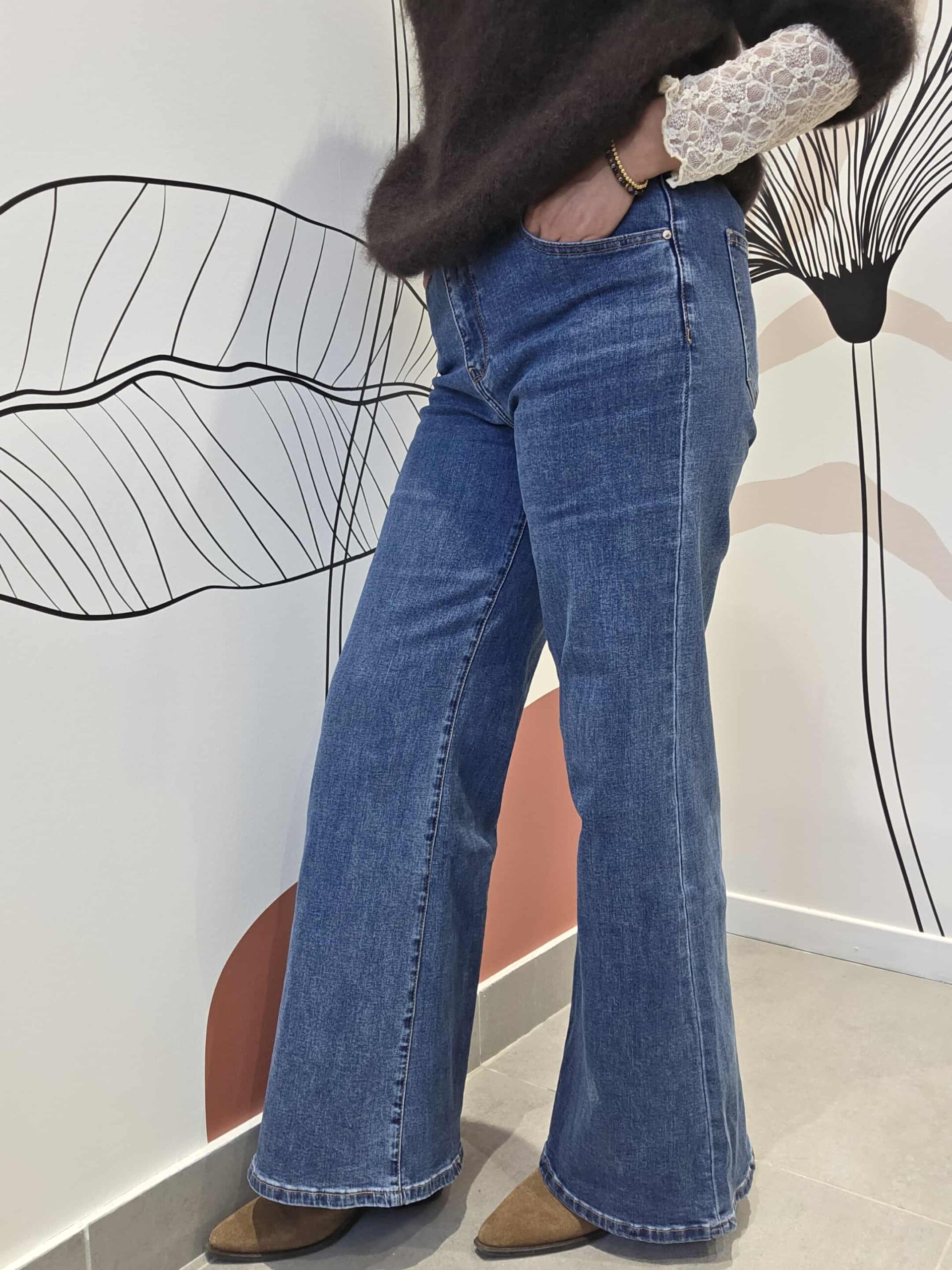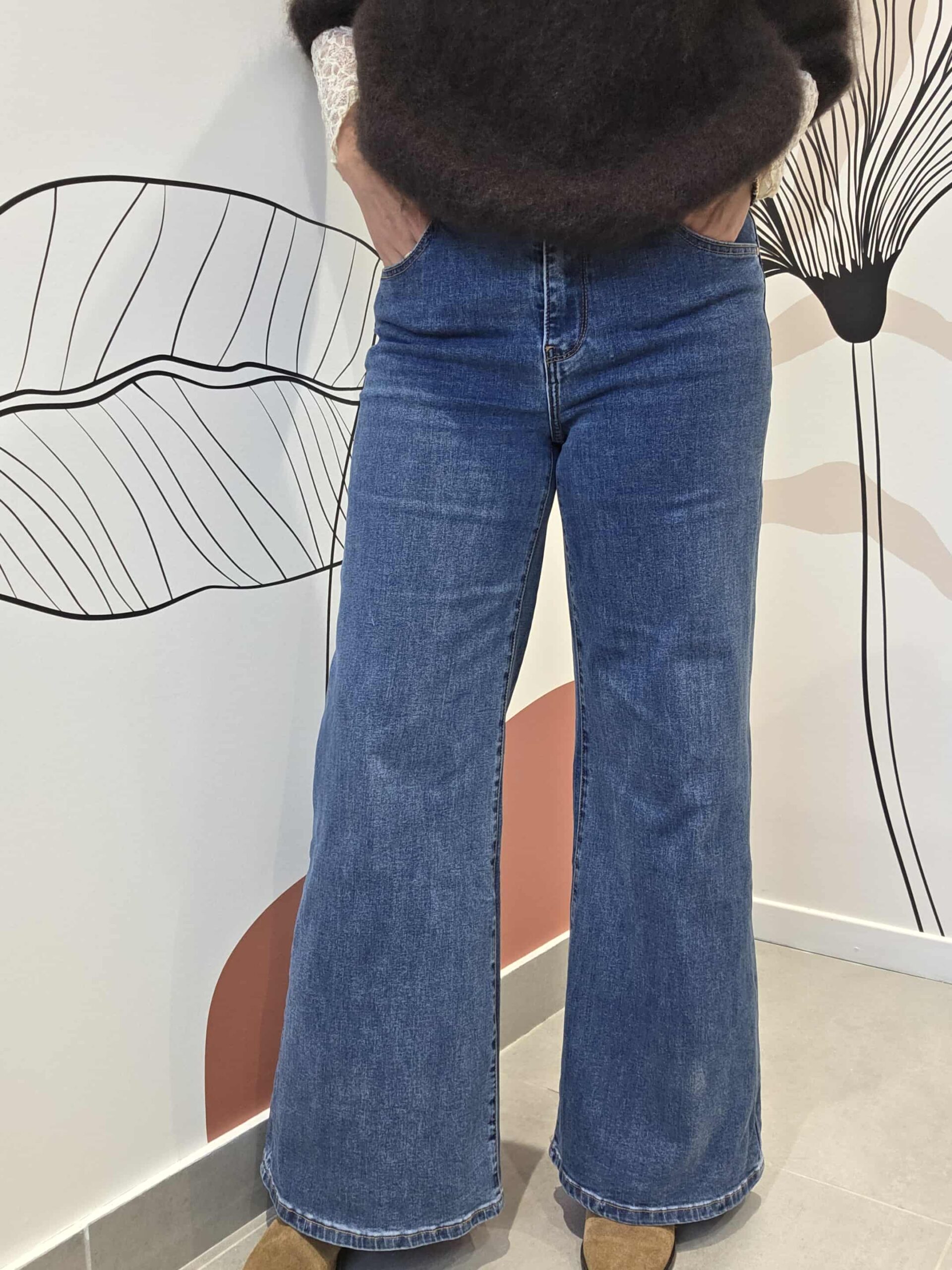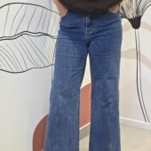 Jean Bleu Orage coupe droite. Deux poches à l’avant ainsi que 2 poches à l’arrière.