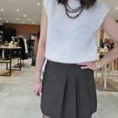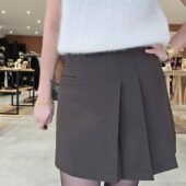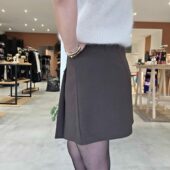 Jupe plissée courte chocolat avec doublure short intégrée pour un confort absolu. Son tissu fluide et sa coupe évasée subliment les jambes pour un look féminin et moderne.