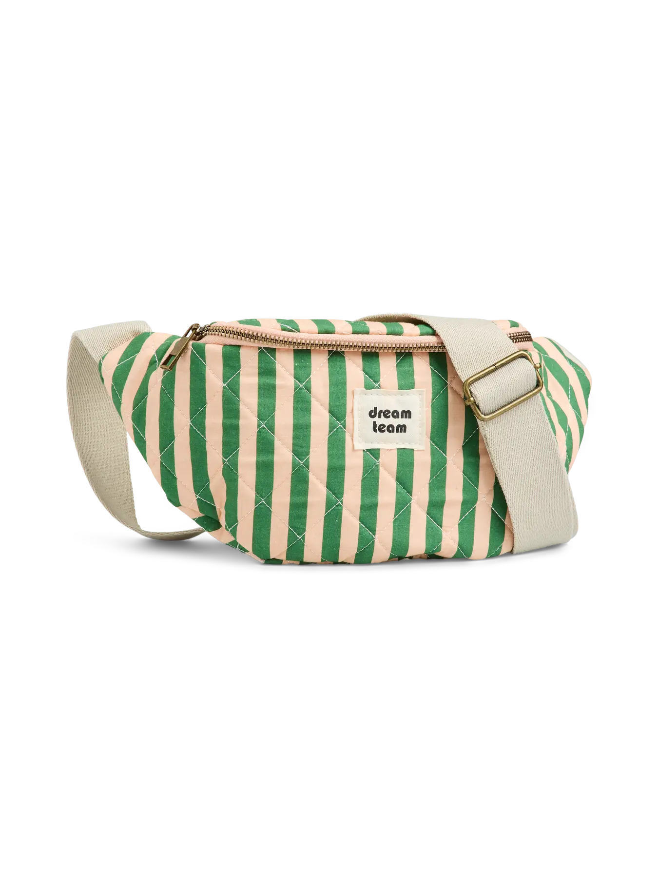 Le sac banane Dream Team apporte une touche fun et tendance à toutes les tenues. Avec son imprimé rayé vert et rose, son effet matelassé et sa bandoulière réglable, il allie style et praticité au quotidien. Idéal pour garder l’essentiel à portée de main, il se porte aussi bien à l’épaule qu’en bandoulière pour un look décontracté et actuel.