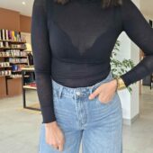 Sandrina mesure 1,67 m et porte habituellement du 36/38 en haut.