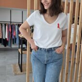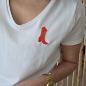 Son détail signature : une broderie rouge en forme de botte western positionnée sur la poitrine. Un motif discret mais plein de caractère, qui apporte une touche mode à ce basique intemporel.