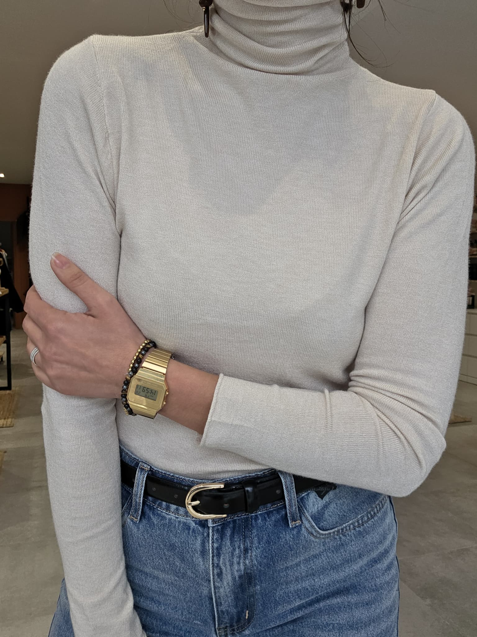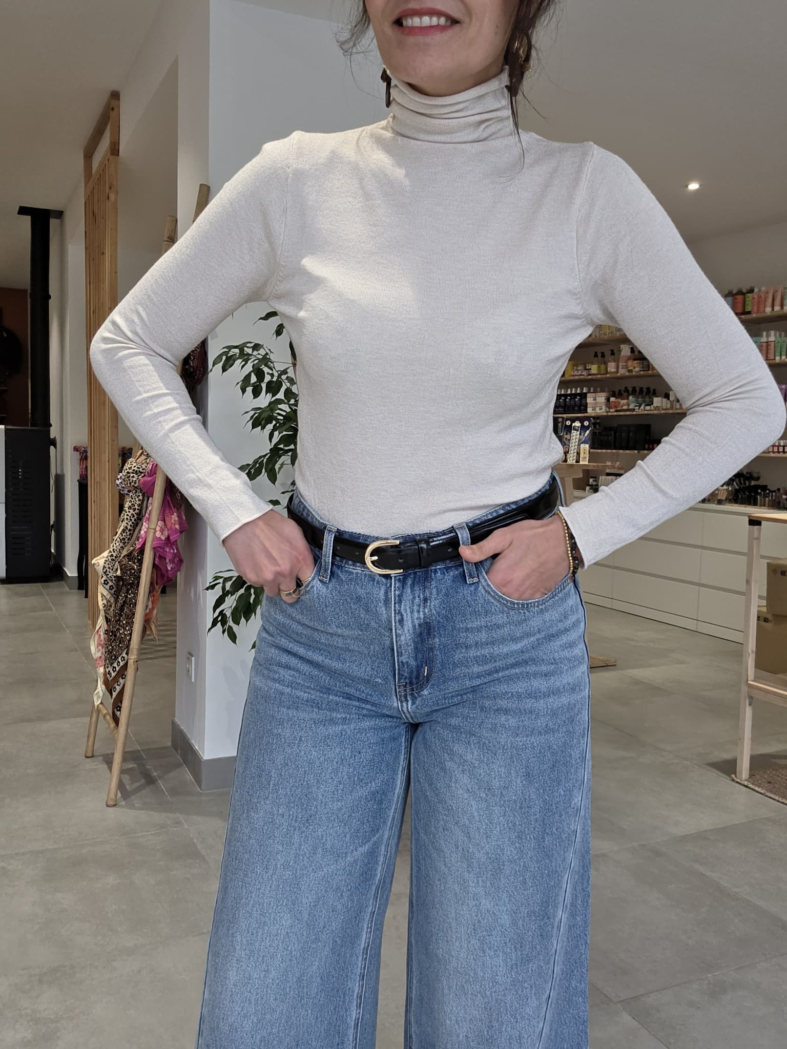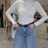 Ce top col roulé en maille douce et extensible est un indispensable pour la saison. Il peut se porter seul ou accompagné. Parfait sous un blazer, une veste ou un pull sans manches, il allie confort et élégance.
