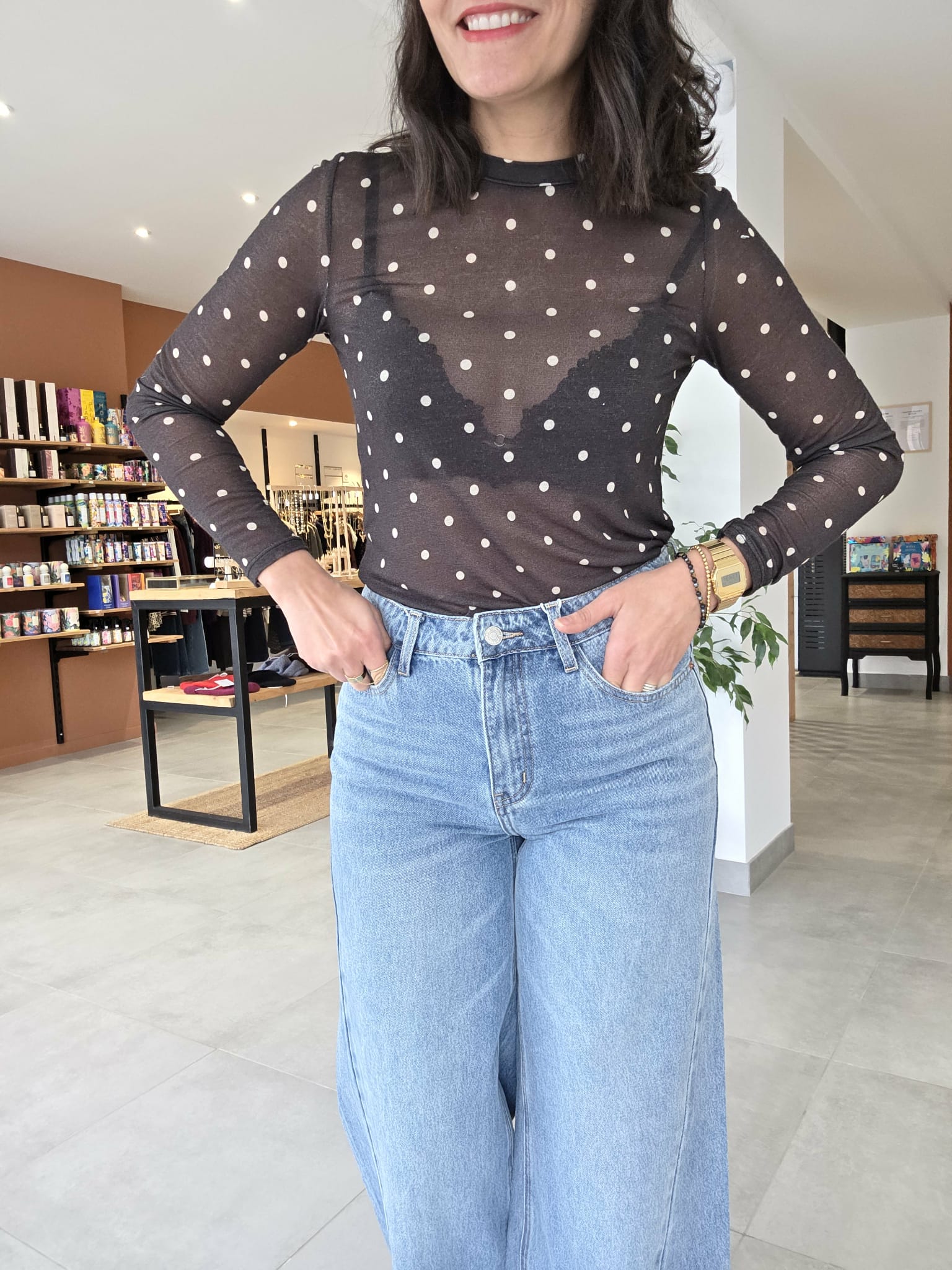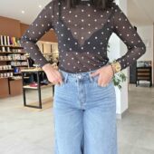Le top Théo allie légèreté et élégance avec sa maille fine à pois et sa composition enrichie en cachemire. Porté seul ou sous une veste, il offre un tombé fluide et une sensation de confort absolu sur la peau.