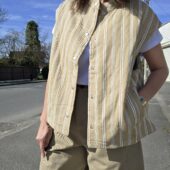 Avec ses rayures délicates et son effet matelassé, elle donne du caractère à un look tout en restant légère et agréable à porter. C’est la veste idéale pour créer un style casual élégant, parfaite pour le printemps ou les soirées d’été. À associer avec un pantalon clair, un jean .