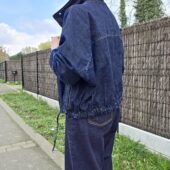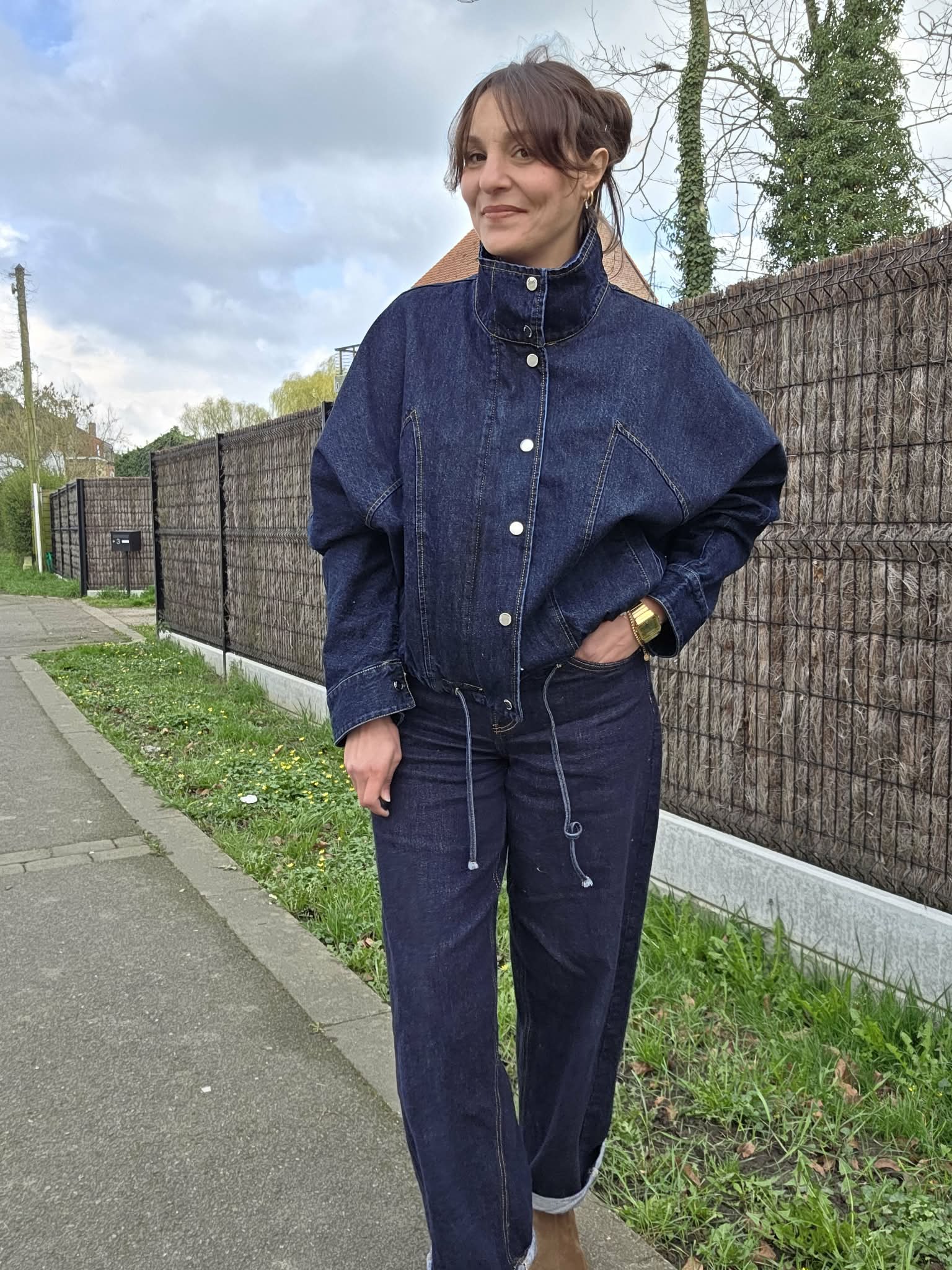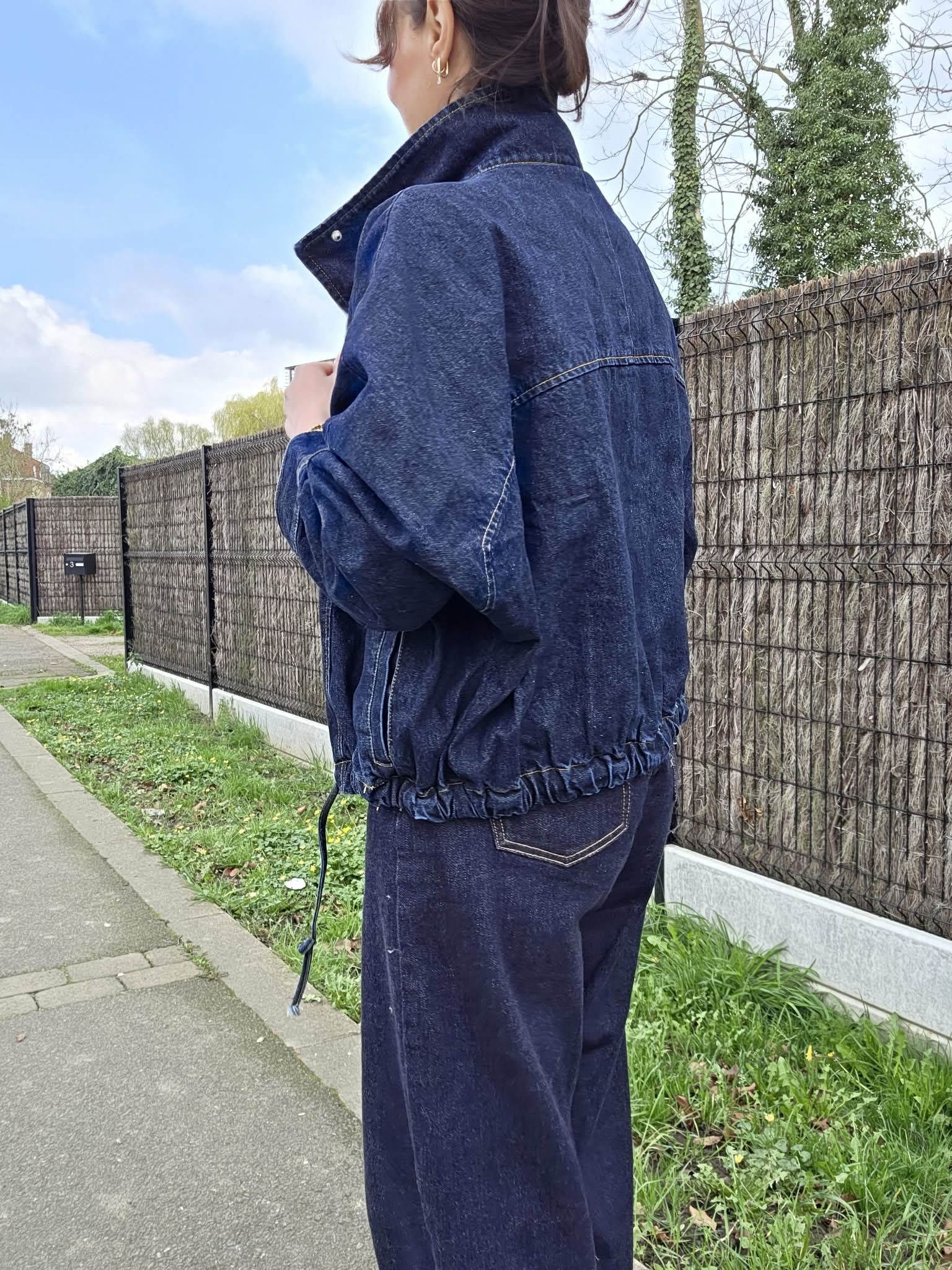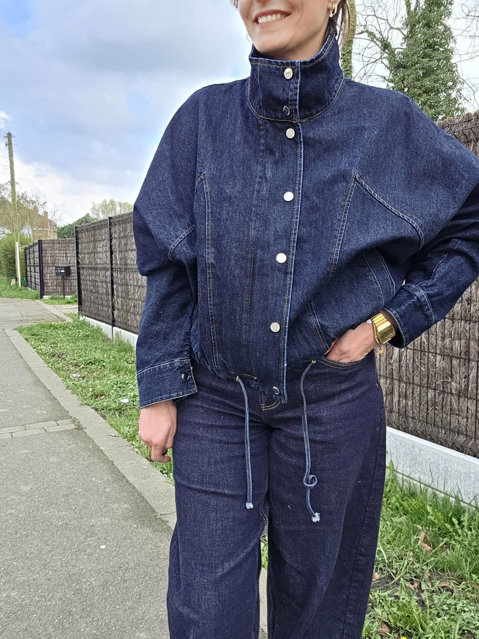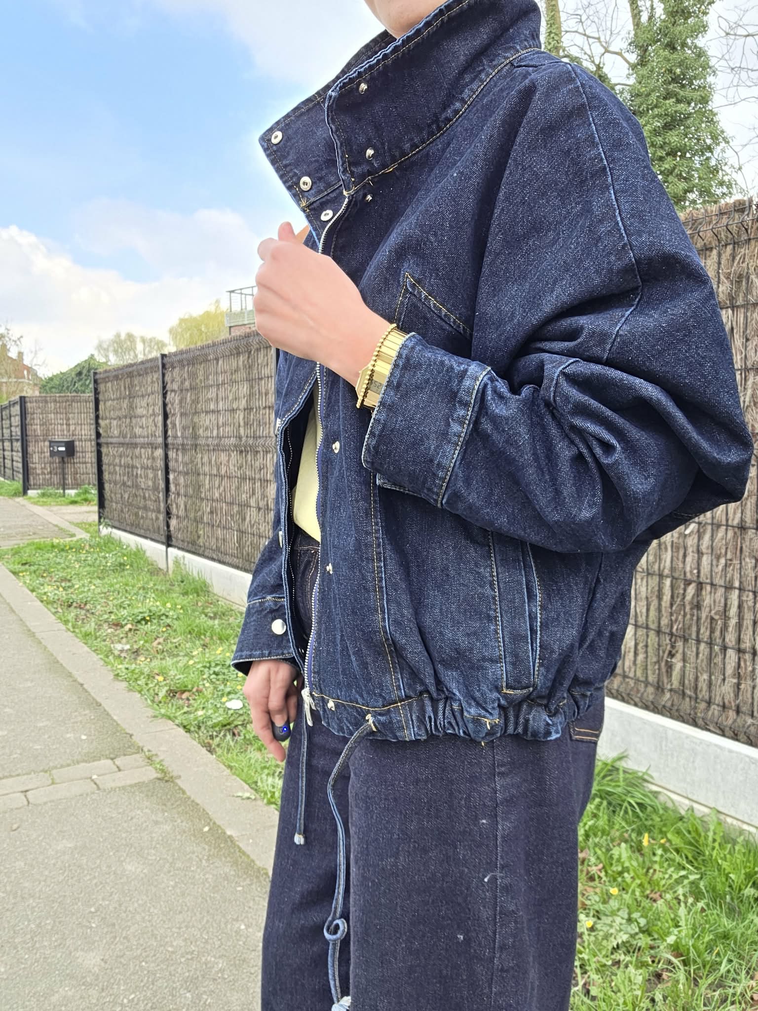 Une veste en denim brut au style moderne et décontracté. Sa coupe oversize, son col montant et ses détails métalliques lui apportent beaucoup de caractère. Les cordons de serrage à la taille permettent d’ajuster la silhouette selon l’envie.