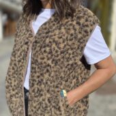 Veste sans manches boutonnage pression imprimé léopard, poches et détail logo Pieces