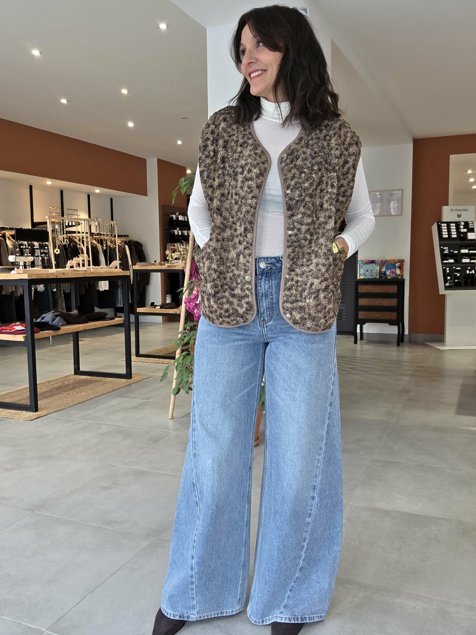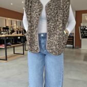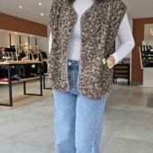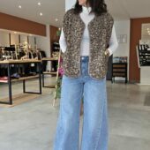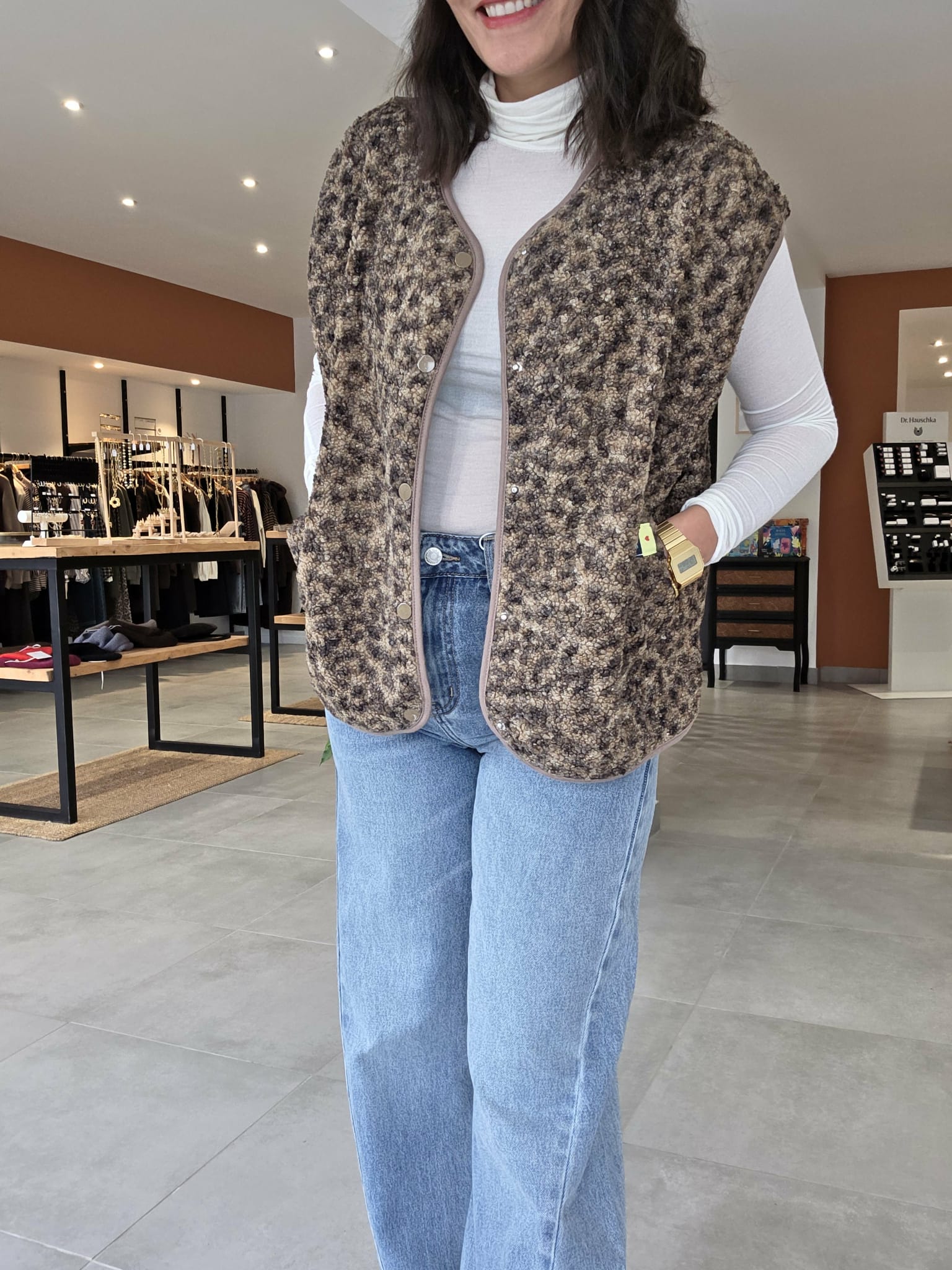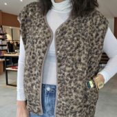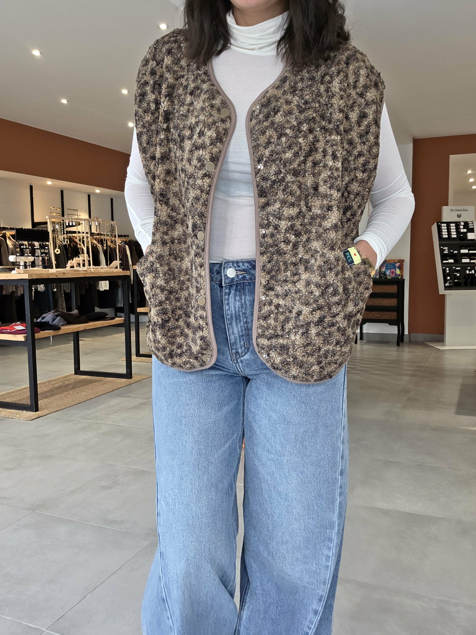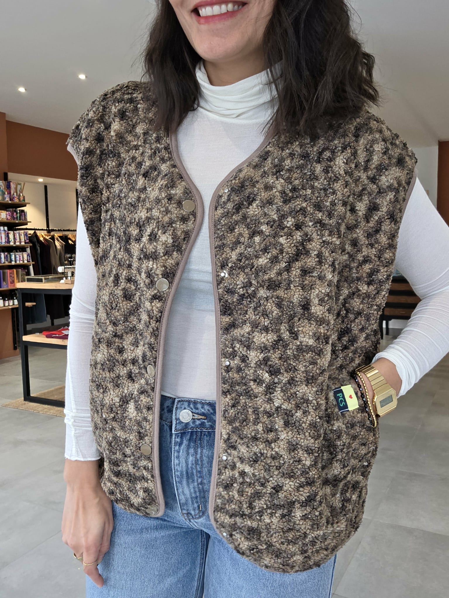 Veste sans manches boutonnage pression imprimé léopard, poches et détail logo Pieces